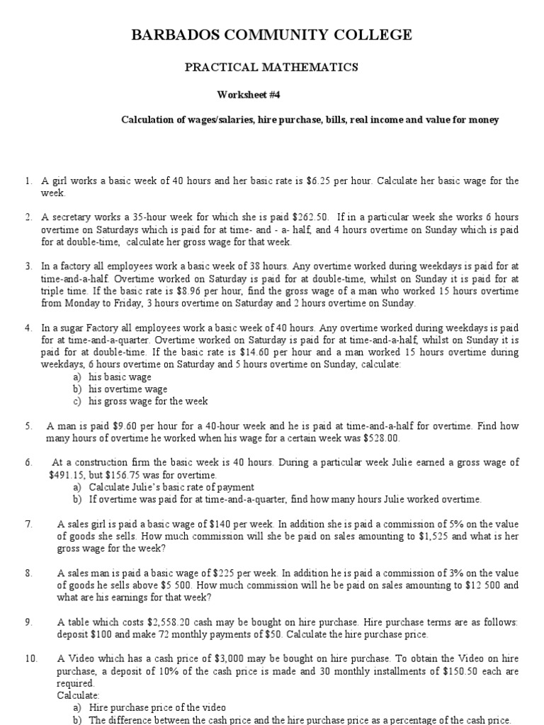 Worksheet 4 Pdf Overtime Workweek And Weekend